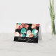Um cartão de agradecimento de casamento. Um grupo de bolhas multicoloridas saltando em um fundo preto. Essas formas esféricas são verde-turquesa brilhante, laranja pastel, ferrugem vermelha e azul frio. Contrastando com um fundo preto, essas formas circulares realmente se destacam. Mensagem de agradecimento personalizável dentro do cartão.