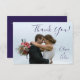 Um cartão de agradecimento de casamento para noiva e noivo para a sua coleção de convites de casamento. Este cartão de dois lados é projetado com a sua foto de casamento favorita de um lado e a sua mensagem no verso. O texto da frente inclui: Obrigado e os primeiros nomes da noiva e do noivo, juntamente com a imagem da sua foto. O lado reverso inclui a sua mensagem de agradecimento em texto branco sobre um fundo escuro. Para personalizar este cartão, basta inserir a sua imagem no nosso modelo fácil. Clique em PREENCHER para cobrir a área. Em seguida, insira o seu texto no nosso modelo passo a passo para a frente e para o verso. É rápido e fácil. Nota: O texto da frente pode ser movido para se posicionar em torno da sua imagem. Nota: as cores do texto e do fundo podem ser alteradas para complementar a sua imagem usando a nossa ferramenta fácil de seleção de cores.