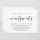 Convite de casamento às pressas com tema de Roteiro Moderno (Almoce conosco, os Recém-Casados). É perfeito para a sua celebração casual de casamento às pressas à beira do lago.