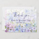 Nosso cartão de agradecimento de casamento azul elegante é uma escolha encantadora para celebrações de primavera ou verão. Belas flores de Clematis azuis derramam sobre um fundo floral gelado. É perfeito para a primavera ou verão. Qualquer tema de casamento de jardim lindo seria perfeito