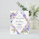 Flores roxas e azuis empoeiradas criam uma elegante estrutura de diamante floral. As flores douradas em linha aberta adicionam um toque de vidro.