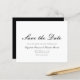 Este casamento formal de na moda salve o cartão de data com elegante roteiro preto e fontes pequenas em um fundo branco. O reverso é preto sólido.