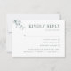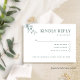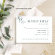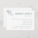 Placa RSVP branca e azul de estilo elegante e mínima com a opção de adicionar ou não opções de refeição. Design com a tipografia azul moderna e contemporânea e sutil detalhe botânico azul desenhado à mão. Se você tiver esta placa RSVP sem opções de refeição, simplesmente apague todos os caracteres de uma caixa de texto com instruções de opções de refeição e use a última caixa de texto modelo para adicionar qualquer mensagem que você quiser (por exemplo, "Espero que você consiga, mal posso esperar para vê-lo lá") ou seus nomes e eventos. Parte da nossa coleção "Modern Elegant Typoographic Blue Wedding" com vários produtos de coordenação disponíveis, incluindo envelopes RSVP. Visite a coleção inteira em: https://www.zazzle.com/collections/modern_elegant_typography_blue_wedding_collection-119316758339581837