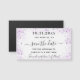 Um casamento de moda Salve o ímã de Datas. Um fundo branco chic. Decorado com faíscas de brilho púrpura e lavanda. Personalize e adicione uma data, um lugar e seus nomes. Salvar a data é escrito com um script de estilo moderno, escrito à mão, com alternâncias.