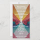Este vibrante e elegante convite de casamento combina estilo minimalista com uma explosão de cor radiante, fazer perfeito para casais que buscam uma estética lúdica, mas refinada. O ponto focal é um espectro brilhante de matizes quentes e legal que irradiam para fora, criando um design captivador do arco-íris, simbolizando unidade e alegria. Um arco vermelho luxuoso com uma gema central cintilante adiciona um toque de glamour e sofisticação. A tipografia limpa e moderna é colocada com gosto no centro, enquadrada pelos raios coloridos, criando um equilíbrio entre diversão e formalidade.