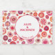Círculos geométricos de aquarelas pintura de abstrato em cores de joias quentes de vermelho, laranja, rosa e roxo. Um belo toque para a mesa, ou como um favor de casamento. O texto pode ser alterado para se adequar à sua celebração.