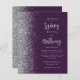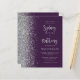 A borda esquerda deste elegante convite de casamento moderno apresenta uma borda falsa de prata. O texto personalizável combina o script caligráfico de cinzas prateadas pálidas e sans serif em um fundo roxo escuro. O verso apresenta um design púrpura e prateado.