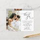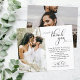 Orçamento, Elegante moderno e manuscrito de caligrafia Script 2 Foto Barato Cartões de agradecimentos de casamento barato em preto e branco. Mande seus obrigados bonitos em estilo com suas fotos favoritas de casamento com nosso casamento elegante, obrigado cartas! Na moda, modelo de cartão de casamento minimalista com 1 foto na frente e 1 foto no verso. Texto de "Obrigado" em um belo texto esplêndido, escrito manualmente, com letras maiúsculas e minúsculas, tipografia ou escrita de caligrafia. Fácil de personalizar o seu nome e obrigado. Se precisar de ajuda, sinta-se livre para entrar em contato com o designer!