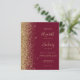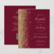 A borda esquerda deste elegante convite de casamento moderno apresenta uma borda falsa de ouro. O texto personalizável combina manuscritos dourados, copperplate e fontes itálicas em um fundo vermelho arrojado. O verso fornece espaço para detalhes do casamento em um fundo de burgundy sólido, junto com um código QR que os convidados podem fazer uma varredura para visitar seu site e RSVP.
