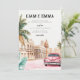 Convite à Paisagem Cubana com carro cubano, construção e árvores.