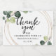 Elegante folhagem de eucalipto com círculos dourados emoldurando a escrita e tipografia clássica "obrigado" para casamento, chá de noiva, festas de noivado ou festa.