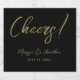 Estas modernas etiquetas de garrafas de vinho espumante de casamento personalizadas contêm a palavra "Cheers!" com os primeiros nomes da noiva e do noivo e a data do casamento em um roteiro de ouro falso e escrito à mão sobre um simples fundo negro. Por favor, veja o nosso compro I Love Weddingz para encontrar mais seleções nesta coleção. Desenhada por Susan Coffey.