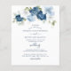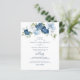 Adicione facilmente seus detalhes de casamento a este lindo modelo floral azul elegante clicando no botão "Personalizar". Apresentando azul moderno e azul-bebê floral com folhagem verde e tipografia moderna em fundo branco. Altere completamente o plano de fundo deste convite clicando no botão "Personalizar"