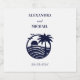 Adicione um pouco de elegância costeira à sua comemoração com esta etiqueta de vinho espumante de casamento costeiro, perfeita para um casamento na praia ou uma celebração de verão. Esta etiqueta apresenta um design gráfico chic de uma palmeira azul marinho, o sol ascensão acima do oceano, e aves pacíficas em voo, todas cercadas por um círculo de marinho na moda colocado sobre um fundo branco nítido. Ideal para um casamento de palmeiras ou evento tropical, esta design costeira traz uma vibração refinada mas relaxada às suas garrafas de vinho espumante — complementando lindamente o seu elegante tema de casamento à beira-mar.