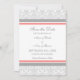 Salve o cartão de anúncio com cor-de-rosa-pêssego elegante, cinza e cor damasco floral branca. Personalizável com seus detalhes de casamento, disponível em uma grande variedade de produtos de casamento correspondentes. Entre em contato conosco para solicitar uma alteração de cor ou um produto personalizado.