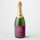 Champanhe de casamento de monograma desenhado à mão e rótulos de vinho em burgundy e pêssego. Design da crista coronária entrelaçada com bagas e folhas circulando suas próprias iniciais de monograma. Outras cores e itens de casamento correspondentes estão disponíveis. © Desenho manual original e design por Sarah Trett para www.mylittleedenweddings.com no Zazzle.