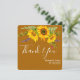 cartões de agradecimentos plano bonito Autumn/ Casamento outono apresenta buquê de girassol com cor d'água sobre fundo marrom ouro com blocos de texto personalizáveis brancos em fontes modernas