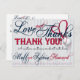 BASEBALL WEDDING OBRIGADO COM O CARTÃO POSTAL 2b-*Este obrigado que você posta é personalizado somente para um CLIENTE ESPECÍFICO. Esta é para eles. Outros nomes de saída estarão disponíveis. Sobre o design: O fundo é coberto por faixas verticais azuis e brancas finas. Vidro decorativo Texto no topo lê: Amor e Obrigados. A seguir, o texto decorativo vermelho que diz: OBRIGADO! em letras impressão. Uma nota personalizada em preto cursivo vai antes da assinatura. Vidro decorativo com o nome da noiva e do noivo. Uma pequena borda horizontal de pequenas bolas de baseball passa pelo fundo. O verso da placa de posto também tem embelezamentos. O texto de vidro do Amor e Obrigados, os casais chamam o texto de vidro e o divisor vertical de baseball. Este design está disponível conforme mostrado em azul e também em vermelho. Não se esqueça de personalizar as notas na frente e atrás no seu próprio texto. Edite as áreas de texto ou exclua/limpe-as para uma placa de vazio.