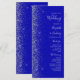 A borda esquerda deste elegante programa de casamento moderno apresenta um design brilhante falso prateado. O texto personalizável combina manuscrito branco, fontes em copperplate e itálico em um fundo azul real.