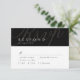 Cartões de RSVP de casamento minimalista clássico moderno apresentam caligrafia elegante e detalhes de evento em fonte serifada atemporal em cinza, preto e branco editáveis, simples e sofisticados, Ótimo para casamento vintage formal, casamento tradicional romântico, casamento clássico moderno e outros eventos.
