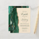 A borda esquerda deste elegante convite de casamento moderno apresenta uma esmeralda verde aquarela agate borda com falsa brilho dourado. O texto personalizável combina manuscrito verde, fontes em copperplate e itálico em um fundo de champanhe. O verso apresenta um design emerald verde e dourado.