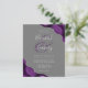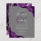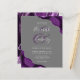 Uma design de cor d'água púrpura, aparada com brilho falso prateado, aparece em dois cantos deste elegante design. Personalize-o com os nomes dos casais em um guião de escrita manual de cinzas prateadas sobre um grande e roxo. Adicione os detalhes do casamento em copperplate e fontes itálicas em um fundo de cinza. O verso apresenta um design de agata prateado e roxo correspondente.