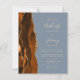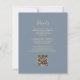 Economize o custo de imprimir e enviar cartões RSVP separados com este elegante convite de casamento de orçamento integral. A borda esquerda apresenta uma cor de água laranja queimada e ferrugem, borda agitada com brilho dourado. O texto personalizável combina manuscrito pálido e dourado, fontes copperplate e itálico em um fundo azul empoeirado. O verso fornece espaço para detalhes do casamento em um fundo azul empoeirado sólido, junto com um código QR que os convidados podem digitalizar para visitar seu site e RSVP.