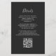 A borda esquerda deste elegante convite de casamento moderno apresenta uma cor d'água borrifada com borda cortada com cintilação falsa de prata. O texto personalizável combina a escrita manual de cinzas prateadas, fontes copperplate e itálico em um fundo fora do preto. Adicione mais detalhes no verso, juntamente com um código QR para ajudar seus convidados a visitar seu site de casamento.