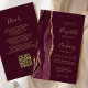 A borda esquerda deste elegante convite de casamento moderno apresenta uma cor vermelha e borrifada, com uma falsa brilha de ouro. O texto personalizável combina a escrita manual de cinzas de carvão, as fontes em copperplate e itálico num fundo burgundy. Adicione mais detalhes no verso, juntamente com um código QR para ajudar seus convidados a visitar seu site de casamento.