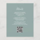 A borda esquerda deste elegante convite de casamento moderno apresenta uma cor d'água borrifada com borda cortada com cintilação falsa de prata. O texto personalizável combina manuscrito branco, fontes em copperplate e itálico em um fundo verde sábio. Adicione mais detalhes no verso, juntamente com um código QR para ajudar seus convidados a visitar seu site de casamento.