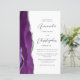 A borda esquerda deste elegante convite de casamento moderno apresenta uma cor d'água roxa, borda agitada com falso brilho prateado. O texto personalizável combina o script de cinza de carvão e as fontes sans serif em um fundo branco. O verso fornece espaço para detalhes do casamento em um fundo branco sólido, junto com um código QR que os convidados podem digitalizar para visitar seu site e RSVP, o que economiza o custo de imprimir e enviar cartões RSVP separados.