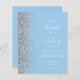 A borda esquerda deste elegante convite de casamento moderno apresenta uma borda falsa de prata. O texto personalizável combina manuscrito branco, fontes em copperplate e itálico em um fundo azul pastel de bebê. Adicione mais detalhes no verso, juntamente com um código QR para ajudar seus convidados a visitar seu site de casamento.
