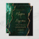 Este elegante convite de casamento apresenta uma imagem de fundo da emerald green watercolor agate, aparada com falso brilho dourado. O texto personalizável combina manuscrito, protetor e fontes itálicas de cor dourada. O verso fornece espaço para detalhes de casamento em um plano de fundo de agata verde correspondente, junto com um código QR que os convidados podem digitalizar para visitar seu site e RSVP, o que economiza o custo de imprimir e enviar cartões RSVP separados.