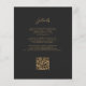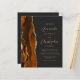 A borda esquerda deste elegante convite de casamento moderno apresenta uma laranja queimada e uma aquarela ferrugem borda agitada com falsa brilho de ouro. O texto personalizável combina o script dourado e as fontes sans serif em um fundo preto de slate. O verso fornece espaço para detalhes do casamento em um fundo preto de slate sólido, junto com um código QR que os convidados podem digitalizar para visitar seu site e RSVP, o que economiza o custo de imprimir e enviar cartas RSVP separadas.