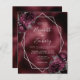 Este elegante convite de casamento moderno apresenta um quadro geométrico prateado, decorado com flores de burgundy e prata, numa imagem de fundo de folha azul escuro e burgundy. O texto personalizável combina a escrita manual imétrica de cinzas prateadas, a placa de cobre e as fontes itálicas. Adicione mais detalhes no verso, juntamente com um código QR para ajudar seus convidados a visitar seu site de casamento.