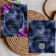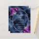 Este elegante convite de casamento moderno apresenta uma estrutura geométrica prateada decorada com buquês florais roxas e prateadas sobre um fundo de película azul marinho. O texto personalizável combina a escrita manual imétrica de cinzas prateadas, a placa de cobre e as fontes itálicas. Adicione mais detalhes no verso, juntamente com um código QR para ajudar seus convidados a visitar seu site de casamento.