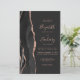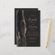 A borda esquerda deste elegante convite de casamento moderno apresenta uma coloração aquosa preta, borda agitada, aparada com falso rosa dourado. O texto personalizável combina manuscrito de rosa, fontes em copperplate e itálico em um fundo de cinza de carvão escuro. Adicione mais detalhes no verso, juntamente com um código QR para ajudar seus convidados a visitar seu site de casamento.