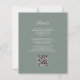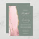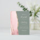 A borda esquerda deste elegante convite de casamento moderno apresenta uma cor-de-água rosa pincelada com borda falsa de ouro. O texto personalizável combina letra pálida, letra copperplate e itálico em um fundo verde de sábio profundo. O verso fornece espaço para detalhes do casamento em um plano de fundo verde de sábio sólido, junto com um código QR que os convidados podem digitalizar para visitar seu site e RSVP, o que economiza o custo de impressão e envio de RSVP separados