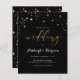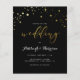 Convites clássicos de casamento com faux gold foil star confetti e tipografia elegante contra fundo preto. "Casamento" é exibido em uma combinação de caracteres serif e caligrafia. Este convite reverte para um fundo preto com um padrão de estrelas douradas. Você pode personalizar facilmente a cor de fundo para atender às suas necessidades. Como parte da seleção do orçamento aqui no Zazzle, esses convites vêm em tamanhos limitados e estoques de papel. Se você precisar de um tamanho ou estoque de papel diferente, esse design pode ser transferido para um formato padrão 5x7 usando a ferramenta de transferência design para obter mais opções.