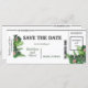 Um cartão de embarque floral tropical, com o tema casamento personalizado Salve o design de Data. Altere facilmente as informações para guardar o cartão de data personalizado.