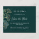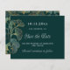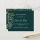 Um moderno e elegante Salve a Data para um casamento. Fundo verde esmeralda decorado com folhas de ginkgo. Personalize e adicione uma data e nomes. O texto: Salvar a Data é gravado com um script de estilo com letra de tendência grande. 1 folha = 1 salve a data da borda impressa em borda.