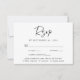 Cartão de cerimônia RSVP de casamento clássico com "Rsvp" em um script moderno de chic, os detalhes de RSVP em tipografia serif elegante e suas opções de menu personalizadas. Adicione os seus nomes e a data do casamento.