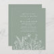 Convide seus convidados para seu dia especial com um "Convite para Casamento Verde de Flor Selvagem Moderna do Boho Sage". Este design apresenta tons verdes macios e seniores, aliados a delicadas ilustrações de flor silvestre, combinando elementos do boho moderno com elegância natural. A tipografia limpa e minimalista complementa a sensação ereta e orgânica das flores silvestres, criando uma vibração sofisticada mas relaxada. Perfeito para casais planejando um casamento rústico, inspirado na natureza, ou ao ar livre, este convite dá o tom para uma celebração memorável cercada por amor e beleza natural. A paleta verde macia e os florais brancos fazem dela uma escolha única e bonita para o seu dia de casamento.