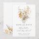 Cartão de salvar data de casamento com flores silvestres pintadas de forma elegante, com flores pintadas de marfim e marrom queimado para qualquer estação, complementado por um lindo contraste de tipo de letra moderna e uma clássica letra serifada. Elegância moderna boho. Flores silvestres simples no verso.