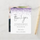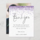 Um valor para o alternativo do ORÇAMENTO em tamanho menor de 4,5 x 5,6" de semirbrilho de 110 lbs, que é de espessura semelhante a um cartão postal (no entanto, não é adequado para uso como cartão postal). POR FAVOR, NOTE que existe UM por folha. Casamento De Fotos Com Script Roxo Glitter Obrigado. Uma brilho de falso roxo borda o topo e define o script de estilo de escrita manual de na moda para Obrigado. No verso, substitua a imagem por sua favorita do dia como guardiã para seus convidados. Personalize facilmente o resto do texto com sua mensagem e nomes.