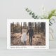 Um cartão de anúncio de elopemento de casamento moderno, para que a família e os amigos saibam que os seus planos de casamento mudaram e tu fugiste. A frente mostra sua foto de casamento, "Nada de rico, apenas amor" (você pode personalizar isso para "Nós Elografamos", Recem casados, etc) e seus primeiros nomes. Ao contrário, personalize sua mensagem mais detalhadamente, incluindo todas as festas de comemoração a serem realizadas posteriormente, e adicione sua assinatura de Sr & Sra.