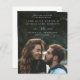Casamento de Foto de Orçamento Simples Elegante Salve o Convite de Data com mínima tipografia e foto na frente. As costas têm um site de casamento e um código QR.