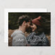 Este script Moderno Photo Wedding Save the Date apresenta um design elegante e mínimo com letra manuscrita para salvar a data tipografia branca em uma foto de cheio sangrada. Detalhes personalizáveis e foto na frente. O verso oferece uma mensagem pessoal. Clique no botão Editar para personalizar este design.