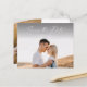 Casamento de Foto do Script de Orçamento Salve o cartão Data. O verso contém uma segunda foto com detalhes adicionais. Clique no botão editar para personalizar este design com suas fotos e detalhes do casamento.