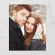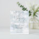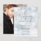 Um convite de casamento elegante e econômico com tipografia de caligrafia sofisticada e flocos de neve delicados caindo sobre seus nomes personalizados, data especial e detalhes do evento de celebração de casamento em um fundo de geada de inverno e sua foto especial no verso. Criado por Thisisnotme©